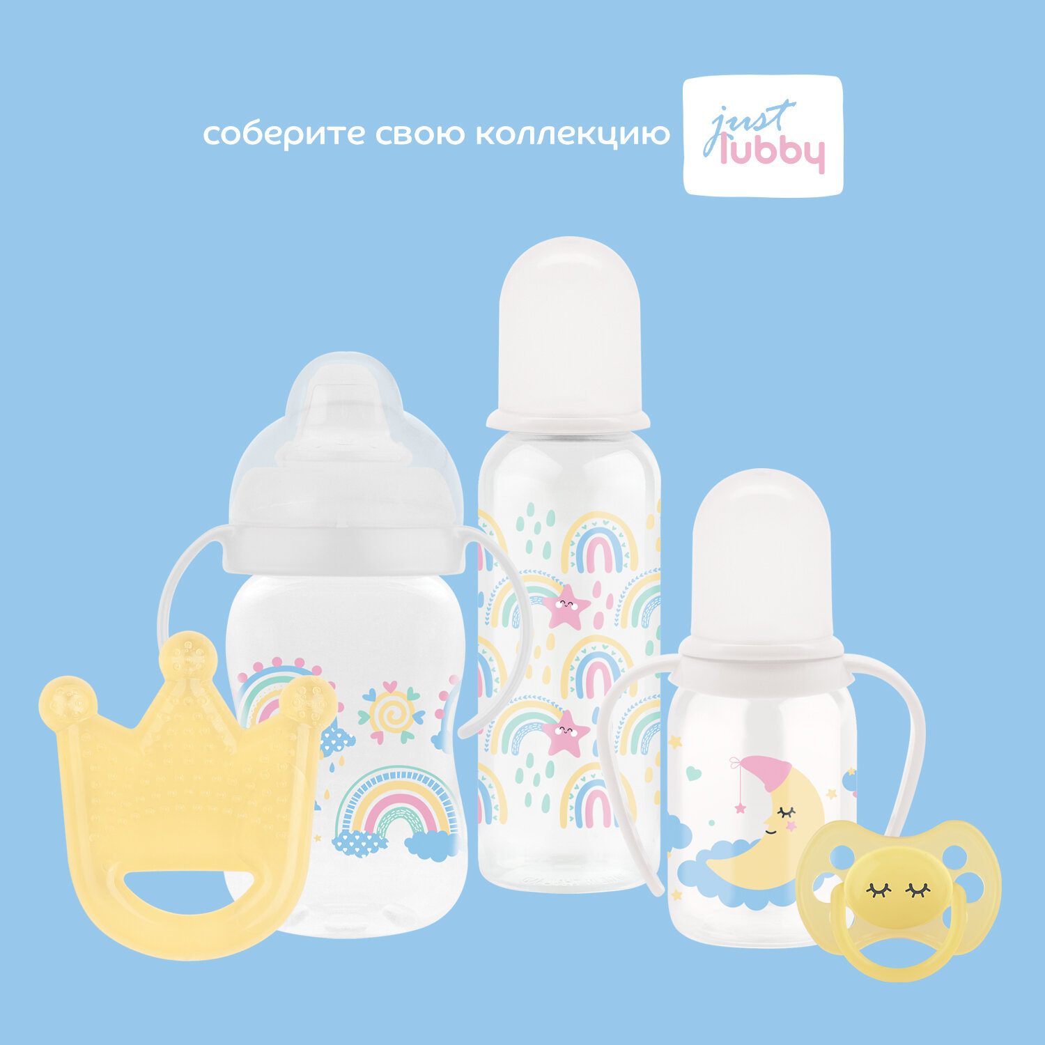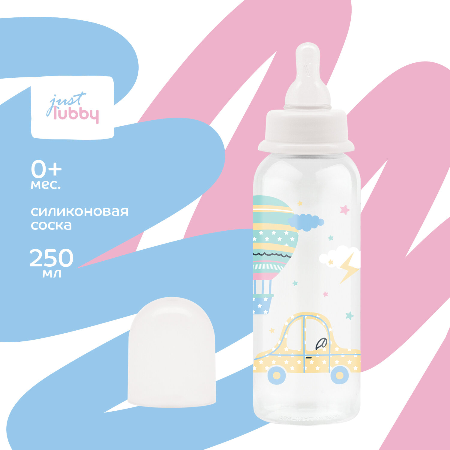 Бутылочка для кормления Just lubby с молочной соской, PP, силикон, микс, с ручкой, с 0+ мес., 250 мл