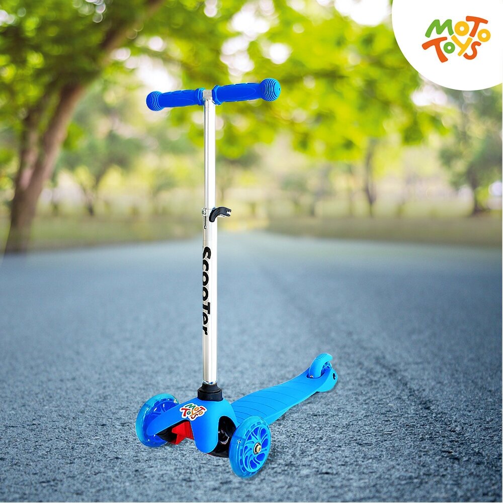 Купить Самокат детский трехколесный голубой Scooter 0073-PU-1, светящиеся колеса