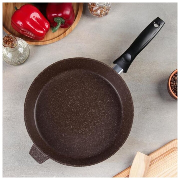 Сковорода алюминий литой А/П 260х60 хозяюшка коричневый камень пласт.ручка (10) алита