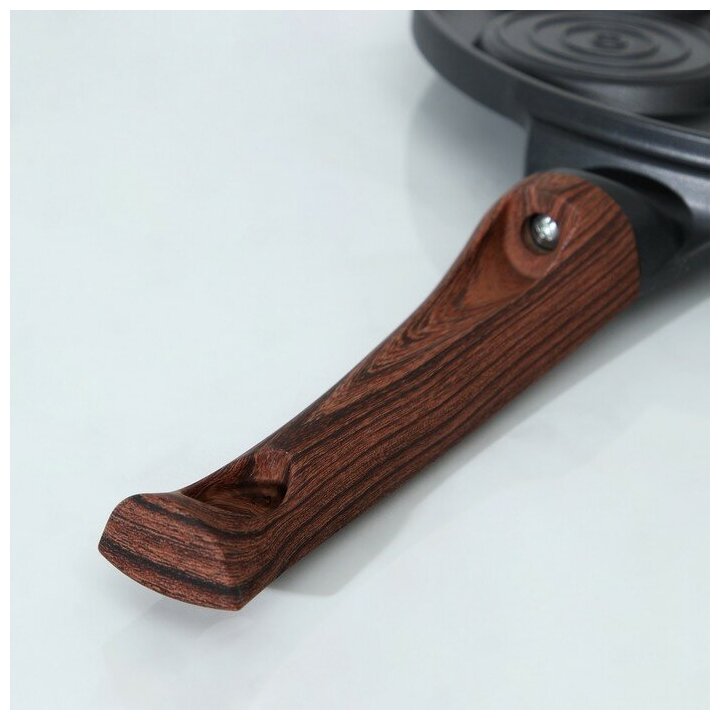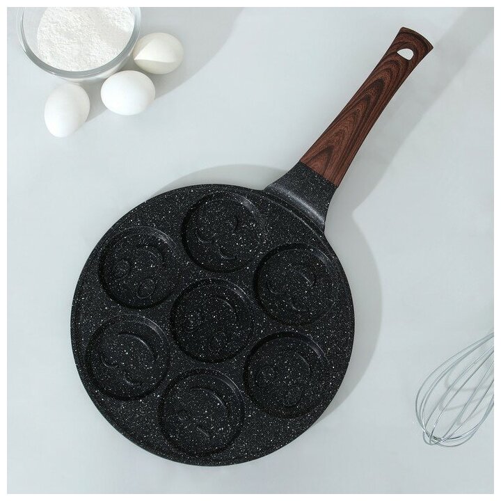 Сковорода-оладница литая Доляна «Смайлы», d=26 см, ручка soft-touch, цвет чёрный, 4577825