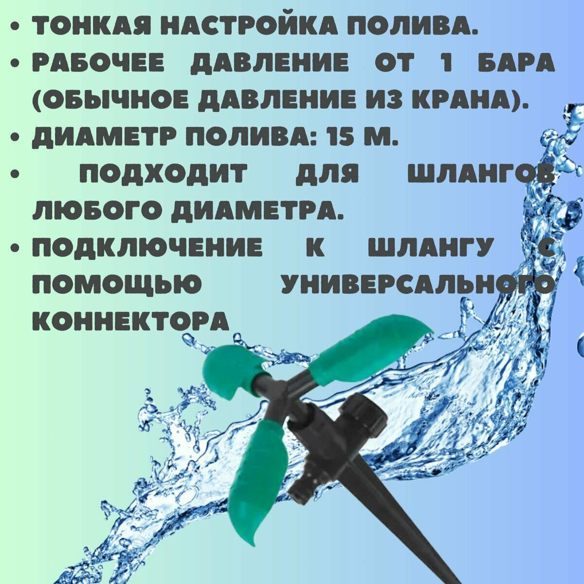 Дождеватель для полива круговой, 28 м2: предназначен для автоматического орошения; в процессе работы вода проходит через специальные сопла