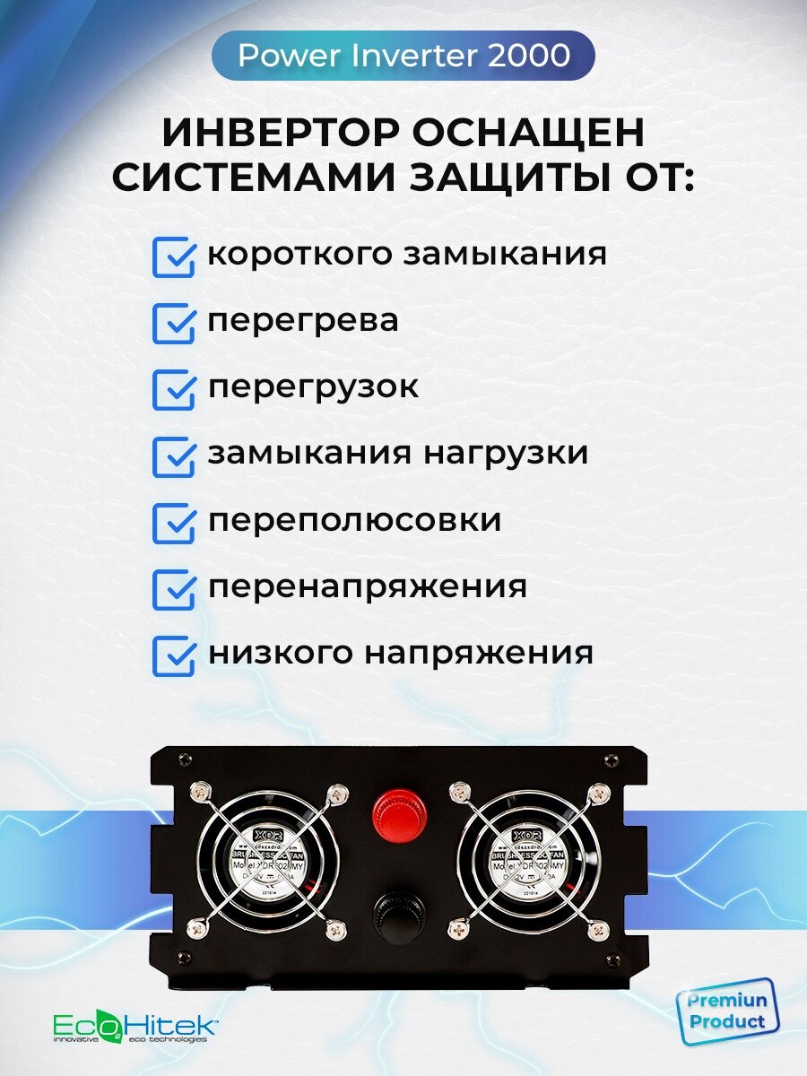 СохранитьPower Inverter 2000 EcoHitek Автомобильный инвертор напряжения 12 - 220В (пост нагрузка до 1000 Вт). Подключение приборов, эл. инструмента. интересное:
