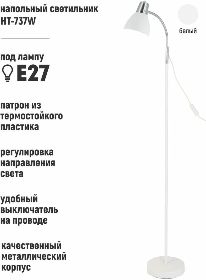 Купить Светильник напольный HT-737W, ARTSTYLE, белый/хром, металл., E27