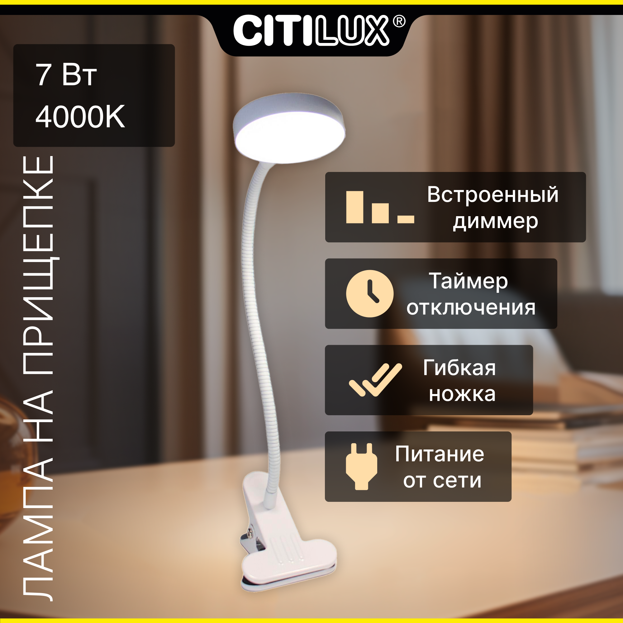 Светильник для чтения на гибкой ножке светодиодная на прищепке Citilux Ньютон CL803070N белый интересное: