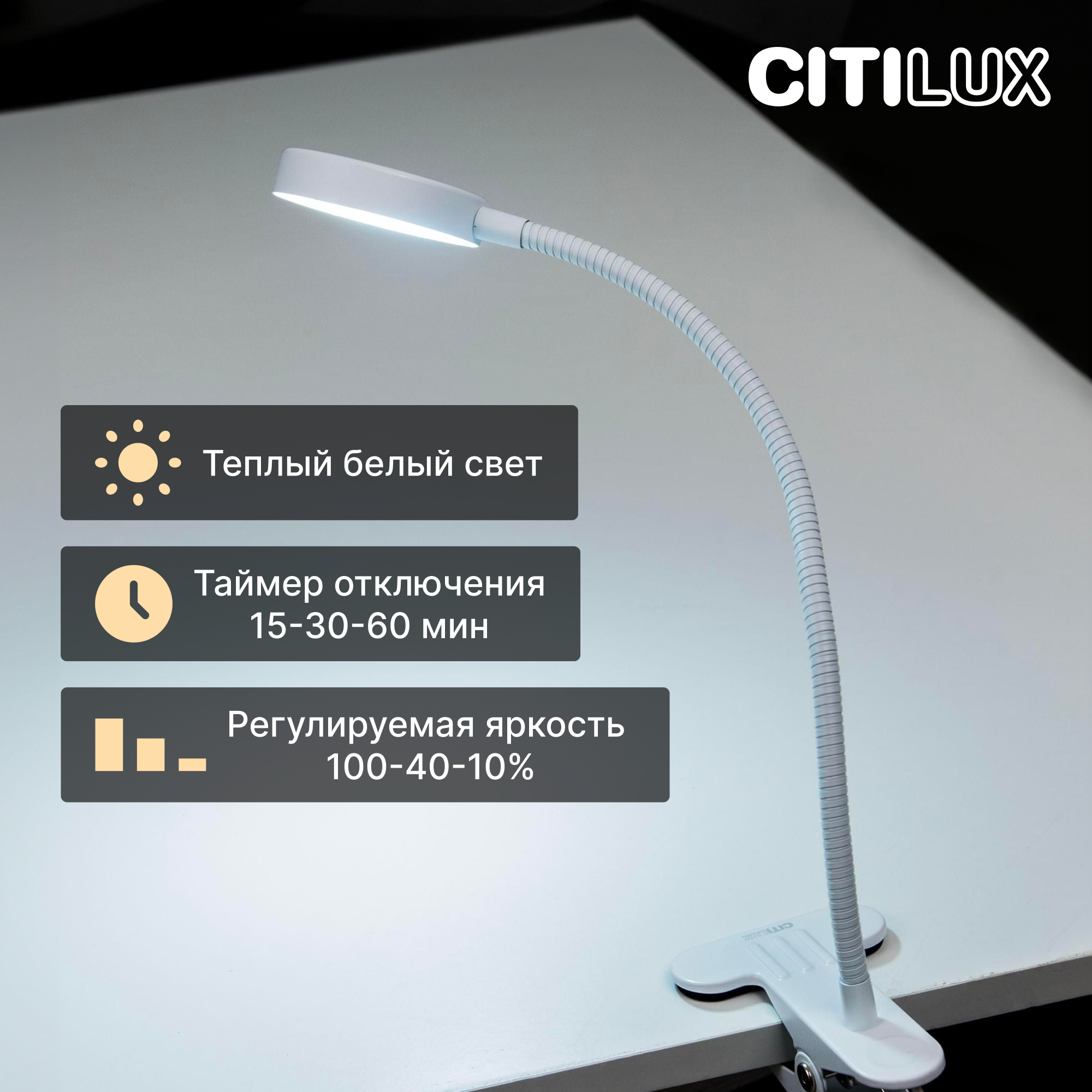 Лампа светодиодная белая на струбцине SMART LIGHT Emocean