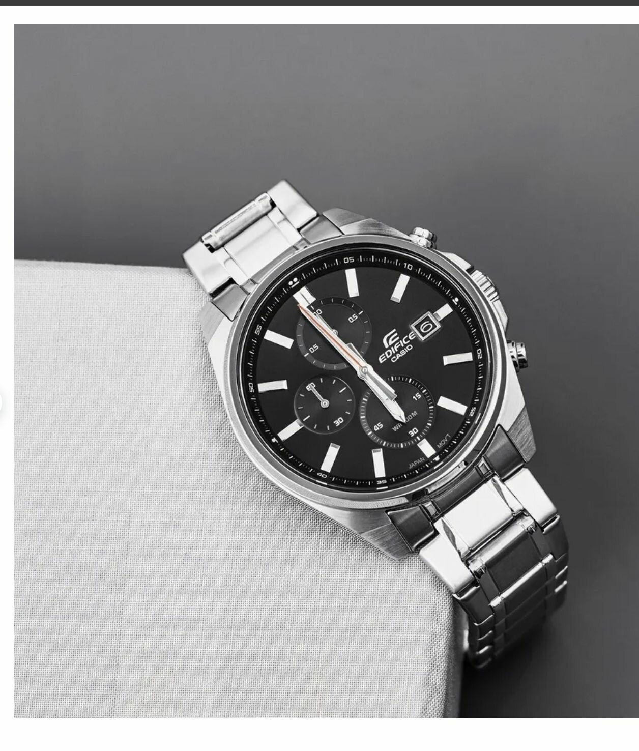 EFR-571D-1A Casio наручные часы кварцевые WR100 (10 атм) мужские серебряный, черный отображение числа подсветка стрелок минеральное стекло