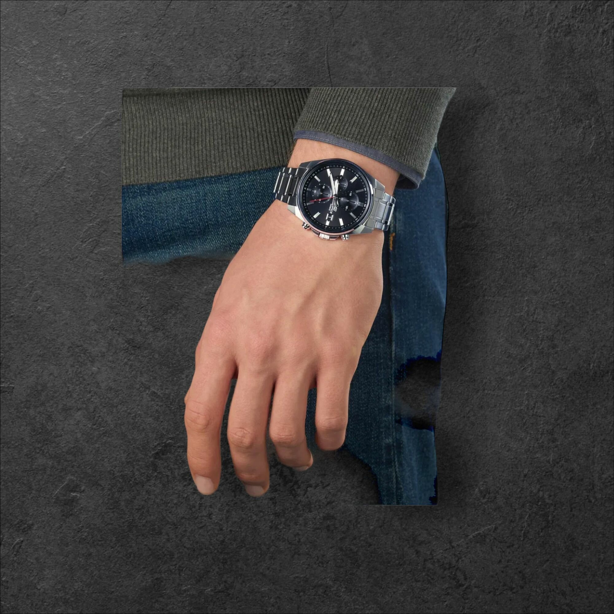 EFR-571DC-1A Casio наручные часы кварцевые WR100 (10 атм) мужские черный отображение числа подсветка стрелок минеральное стекло