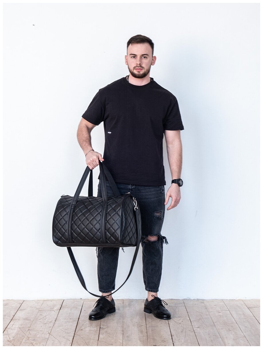 Сумка спортивная дорожная для путешествий через плечо Carsbag Экокожа Ромб Черный интересное: