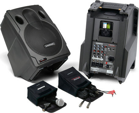 SAMSON EXL250 Мобильный звуковой комплект: 250 Вт, Две акустич. системы (12"НЧ+1"ВЧ), встроенный микшер, возможность работы от аккумуляторов