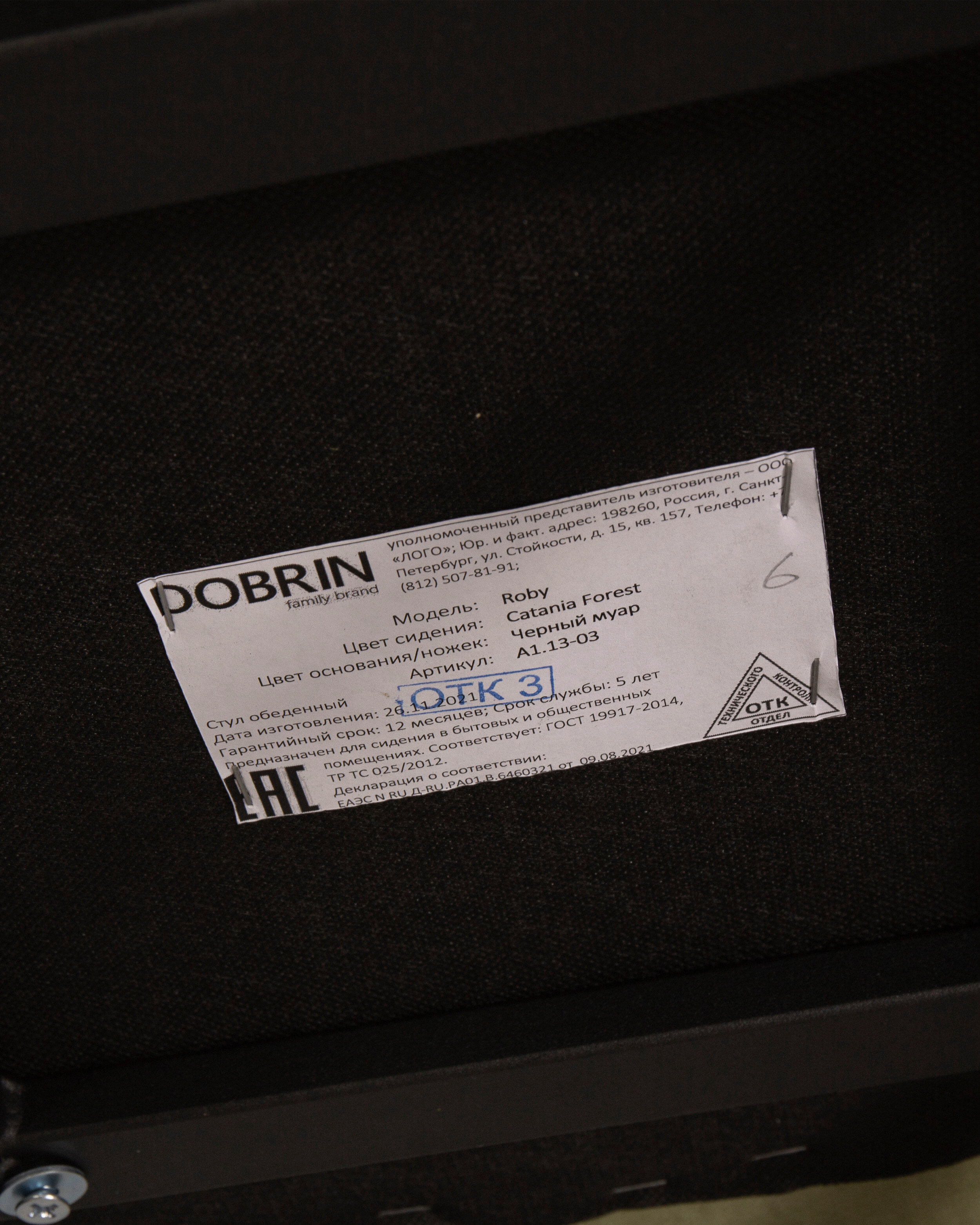 Стул обеденный DOBRIN ROBY (эмаль черный муар велюр Catania Forest) интересное: