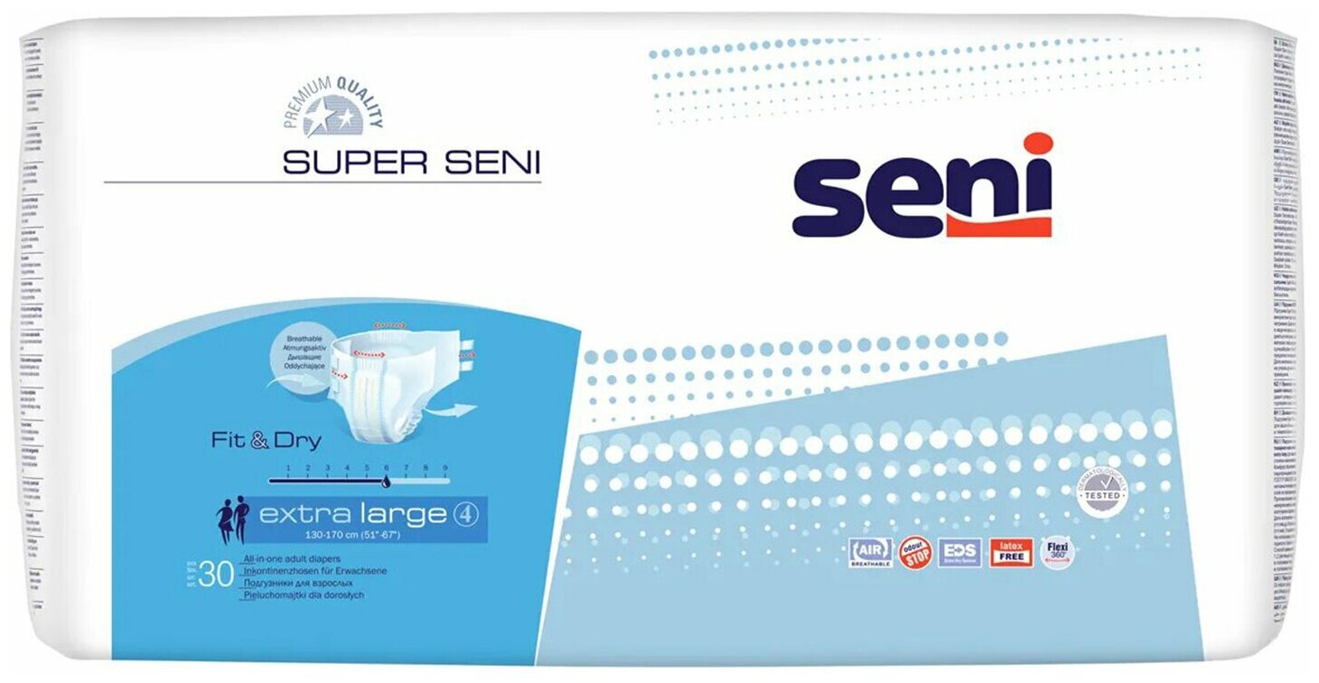 Подгузники для взрослых SUPER SENI Extra Large, комплект 30 шт., одноразовые, SE-094-XL30-JR1