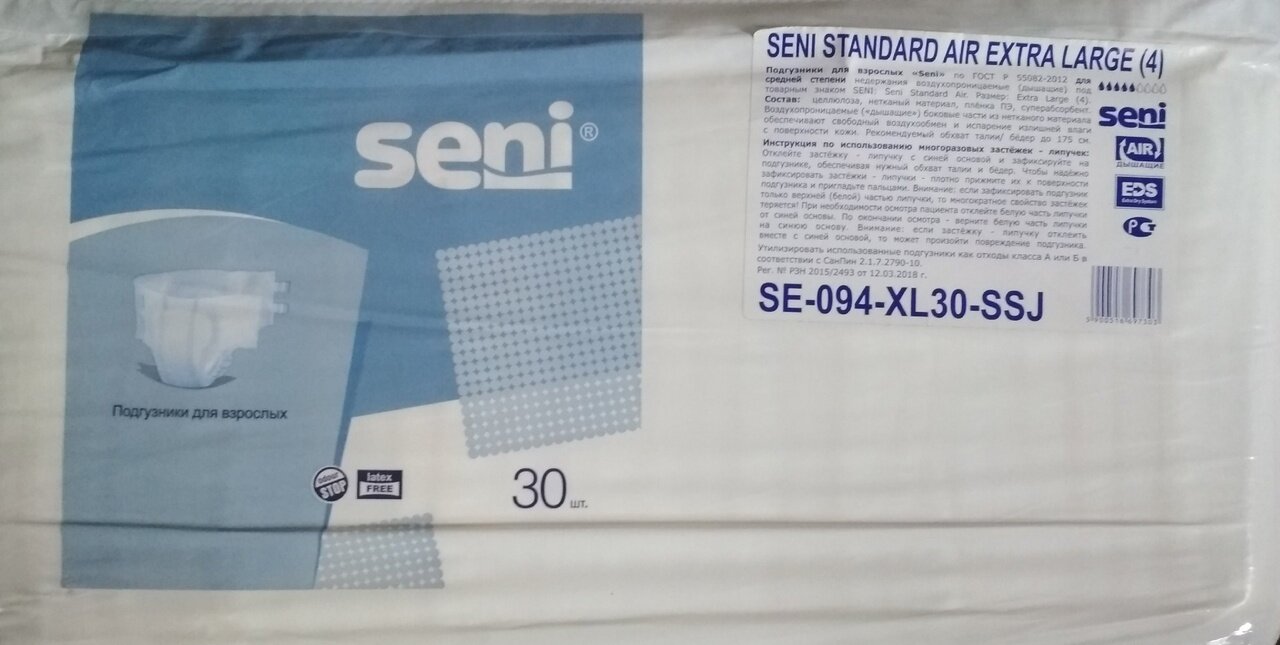 Ниже Вы можете прочитать отзывы на Подгузники для взрослых Seni Standard Air Extra Large (4), 5капель XL, 130-175 см, 30 шт., ознакомится с подробными характеристиками, посмотреть интересные обзоры и фотографии на Подгузники для взрослых Seni Standard Air Extra Large (4), 5капель XL, 130-175 см, 30 шт..