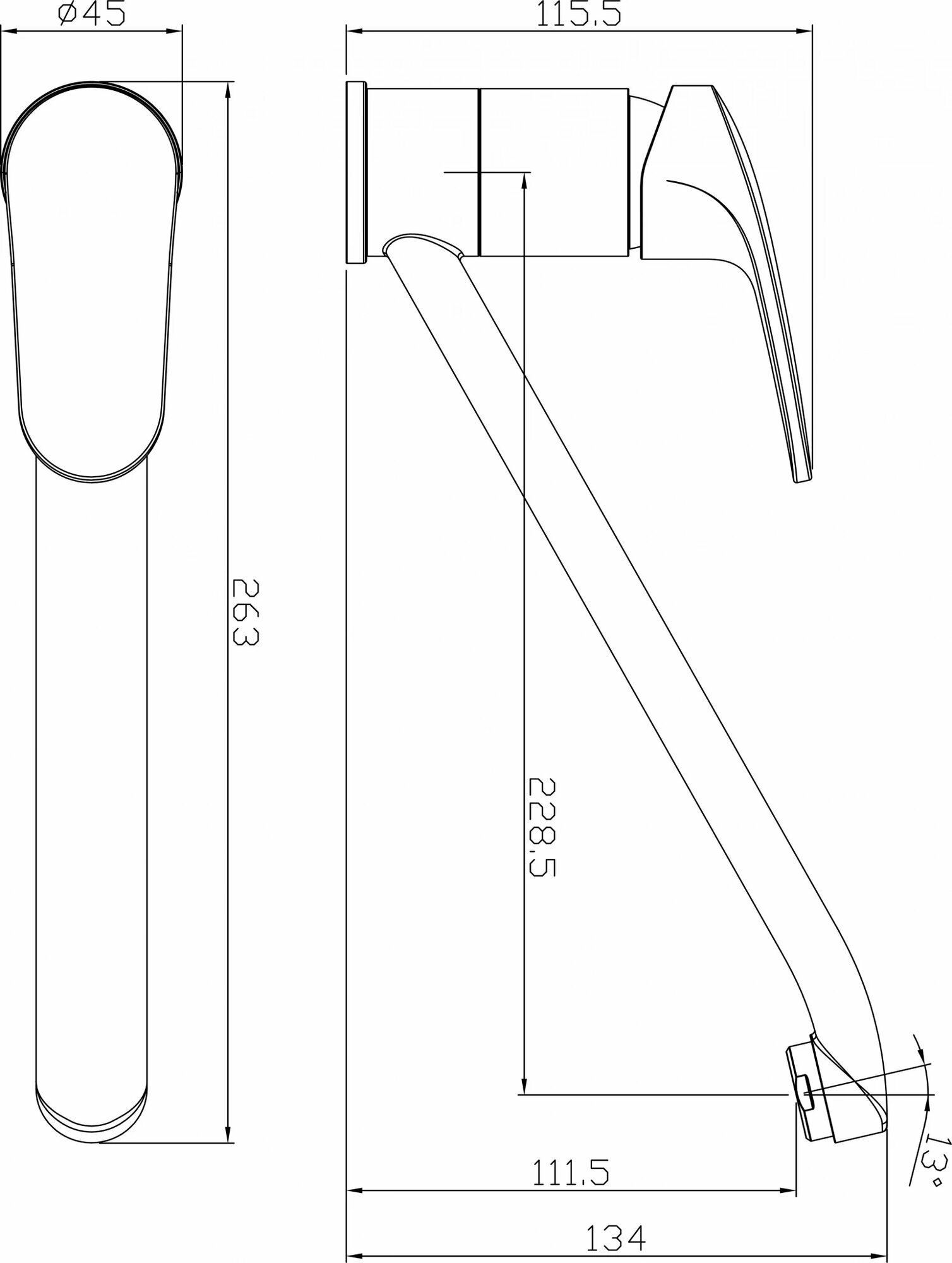| Длина излива | 228 мм |