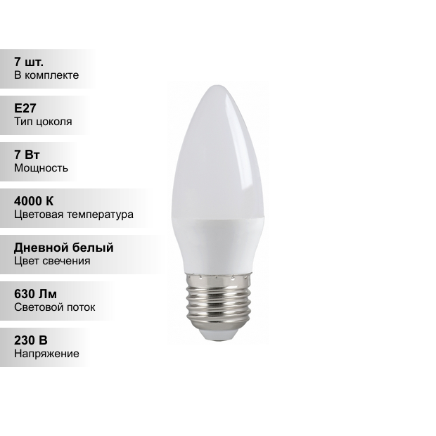 Лампа светодиодная IEK ECO C 7Вт E27 4000К 630Лм 230В LLE-C35-7-230-40-E27, 1324956