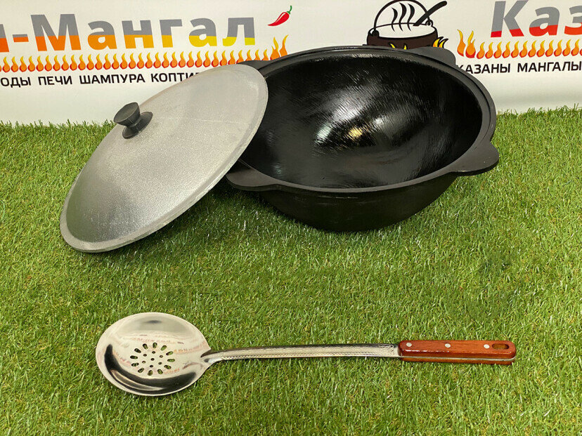 Комплект: Казан узбекский чугунный 16 литров (круглое дно) + Шумовка 42 см интересное: