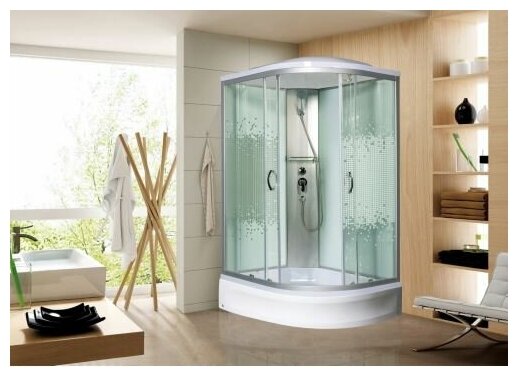 Душевая кабина мономах 120x90х210 профиль хром, стекло прозрачное с рисунком, левая 10000005827