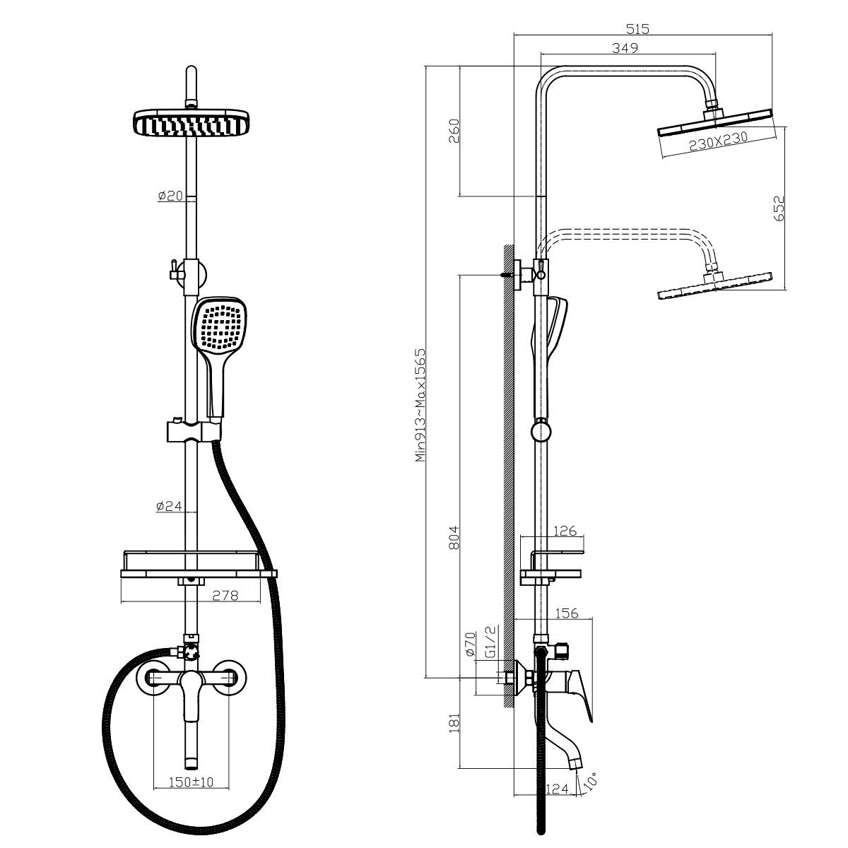 Смеситель Rossinka RS29 для ванны и душа с регулируемой высотой штанги, поворотным изливом и лейкой (RS29-46)