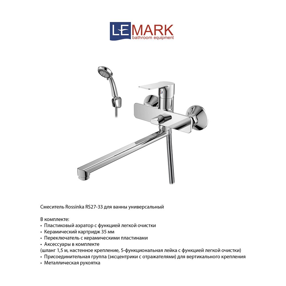 Смеситель для ванны ROSSINKA RS27 длинный излив с набором для душа хром интересное: