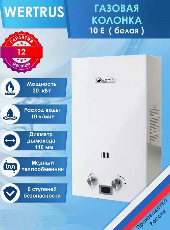 Газовый проточный водонагреватель WERT 10E Цвет-белый интересное: