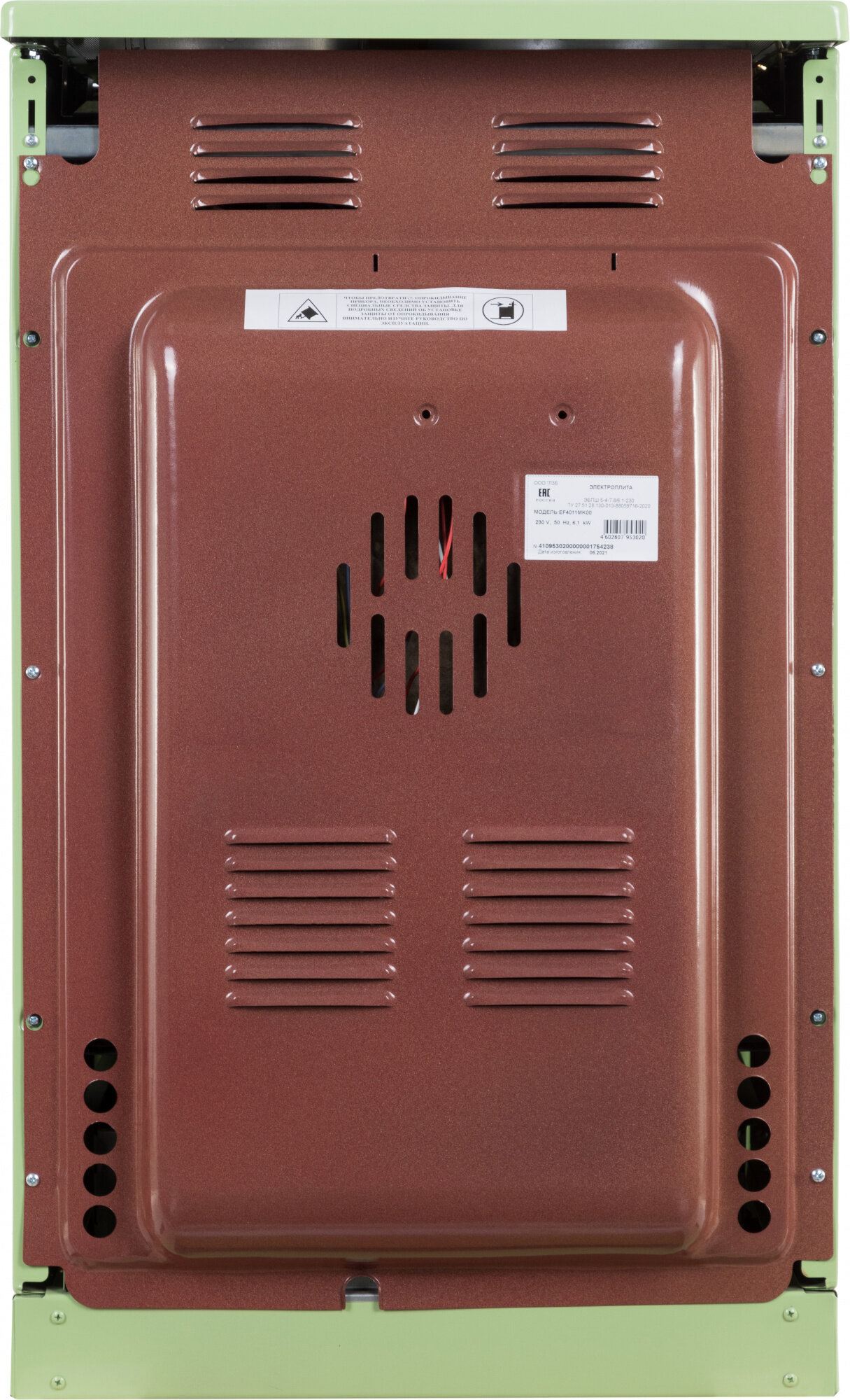 Электрическая плита лысьва EF4011MK00, стеклокерамика, без крышки, зеленый