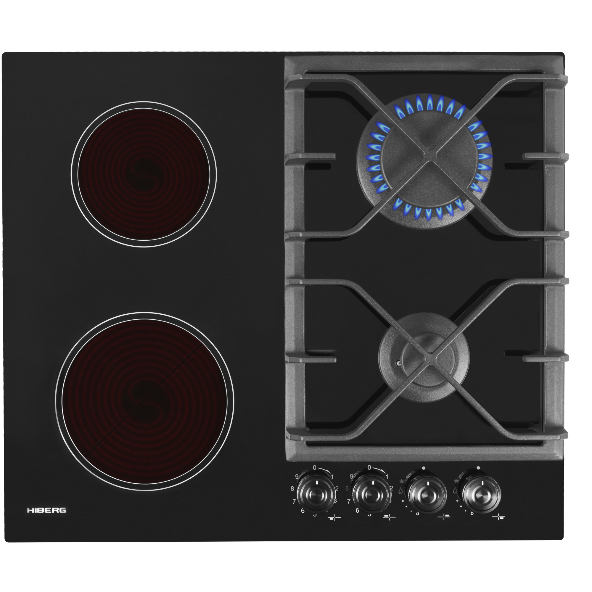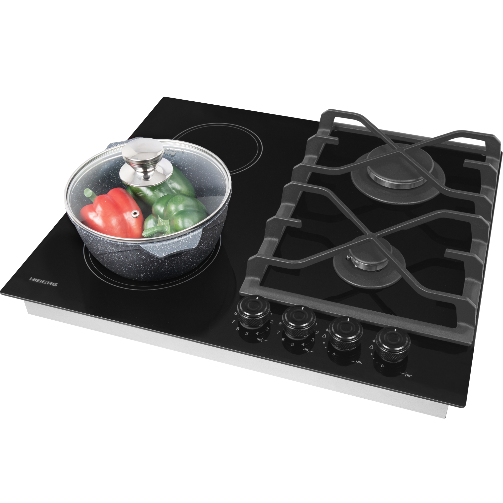 Варочная поверхность HIBERG VM 6020 B комбинированная, газоэлектрическая, стеклокерамика, электророзжиг, газ-контроль, черный