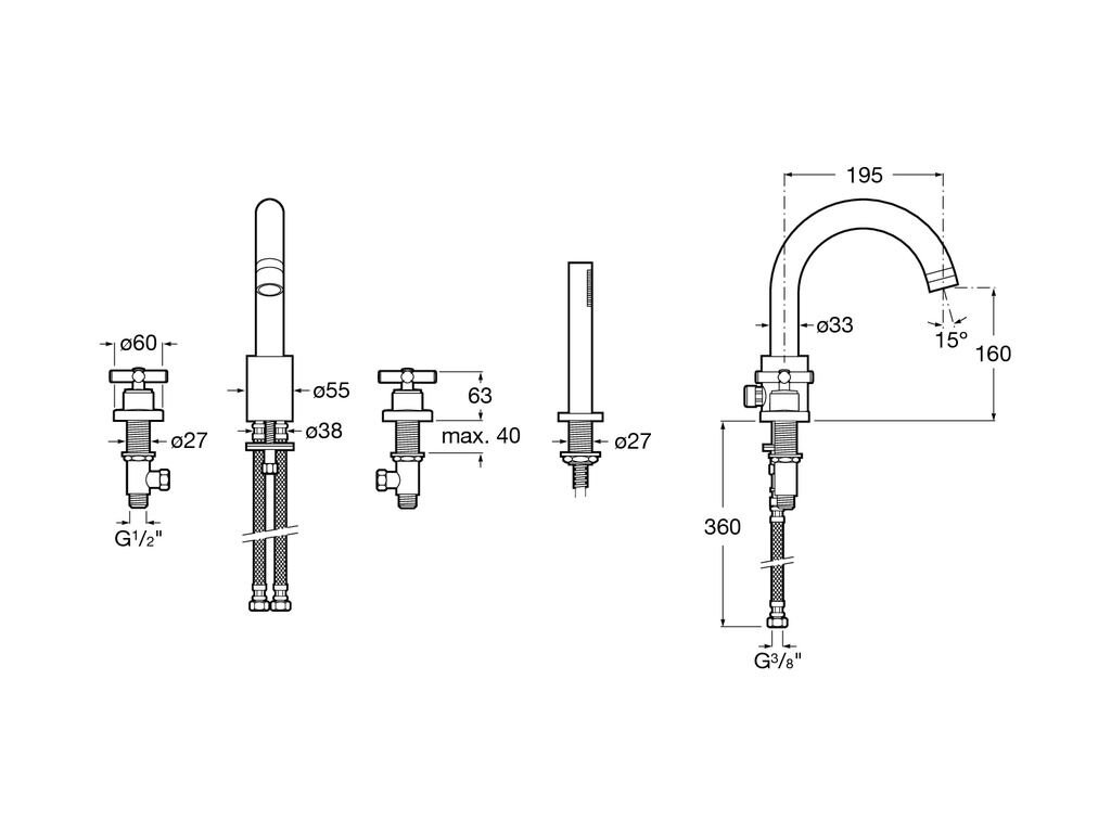 Смеситель Roca Loft на край ванны с душевым набором 5A0943C00 интересное: