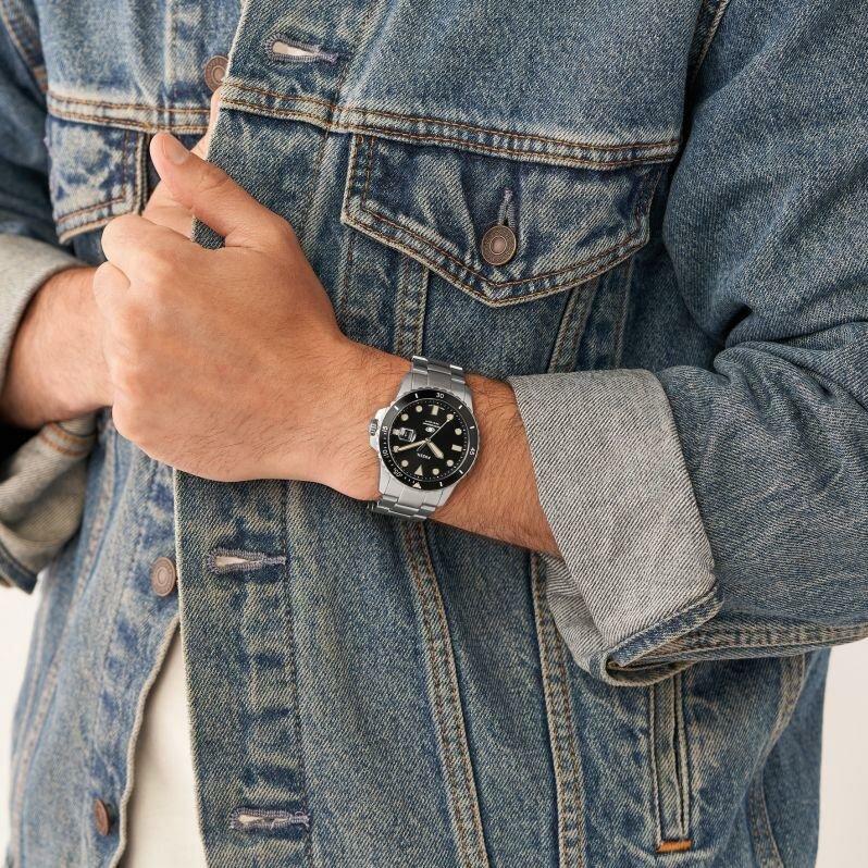 Мужские наручные часы на стальном браслете Fossil Blue FS5952, кварцевый механизм с высокой точностью.