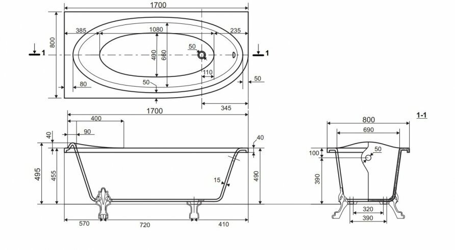 Ванна из искусственного камня Эстет Венеция L 170x80 см интересное: