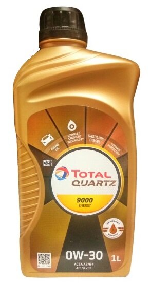 Масло моторное синтетическое QUARTZ 9000 ENERGY 0W30 API SL/CF, ACEA A3/B4 1л (1 шт.)