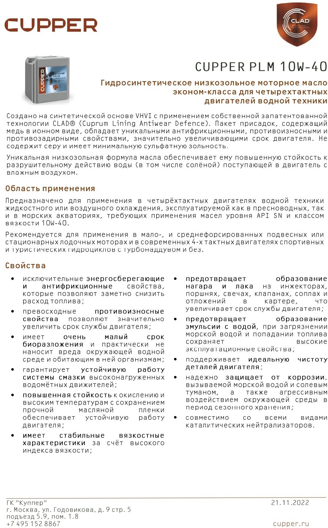 Масло моторное CUPPER PLM 4Т 10W40 (10 л) интересное: