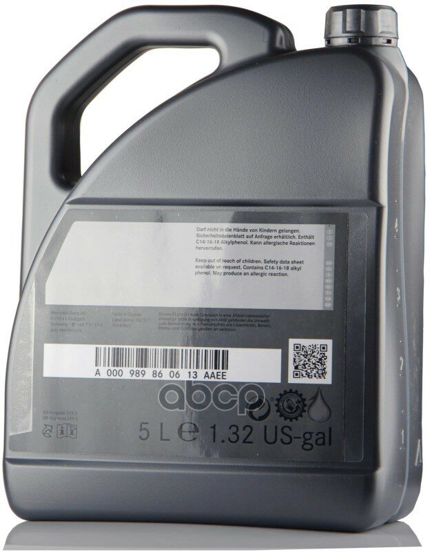 | Дополнительная информация | A000989860613AAEE . Разлито в Германии г. Штутгард Применяемость: Бензиновые двигатели: M122, M132, M266, M271, M271 EVO, M272, M273, M278, M270, M274, M276, M281. V-Класс: M200.71 Дизельные двигатели без DPF: OM660, OM640, OM642, OM646, OM651 V-Класс: OM611, OM612, OM646, OM647, OM651. |