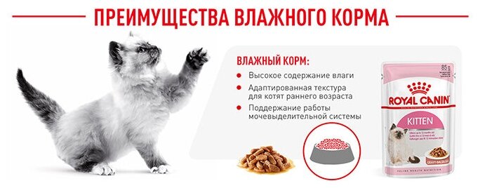 Влажный корм Royal Canin Kitten специально для котят в период второй фазы роста до 12 месяцев, соус, 85гр. (24шт) интересное: