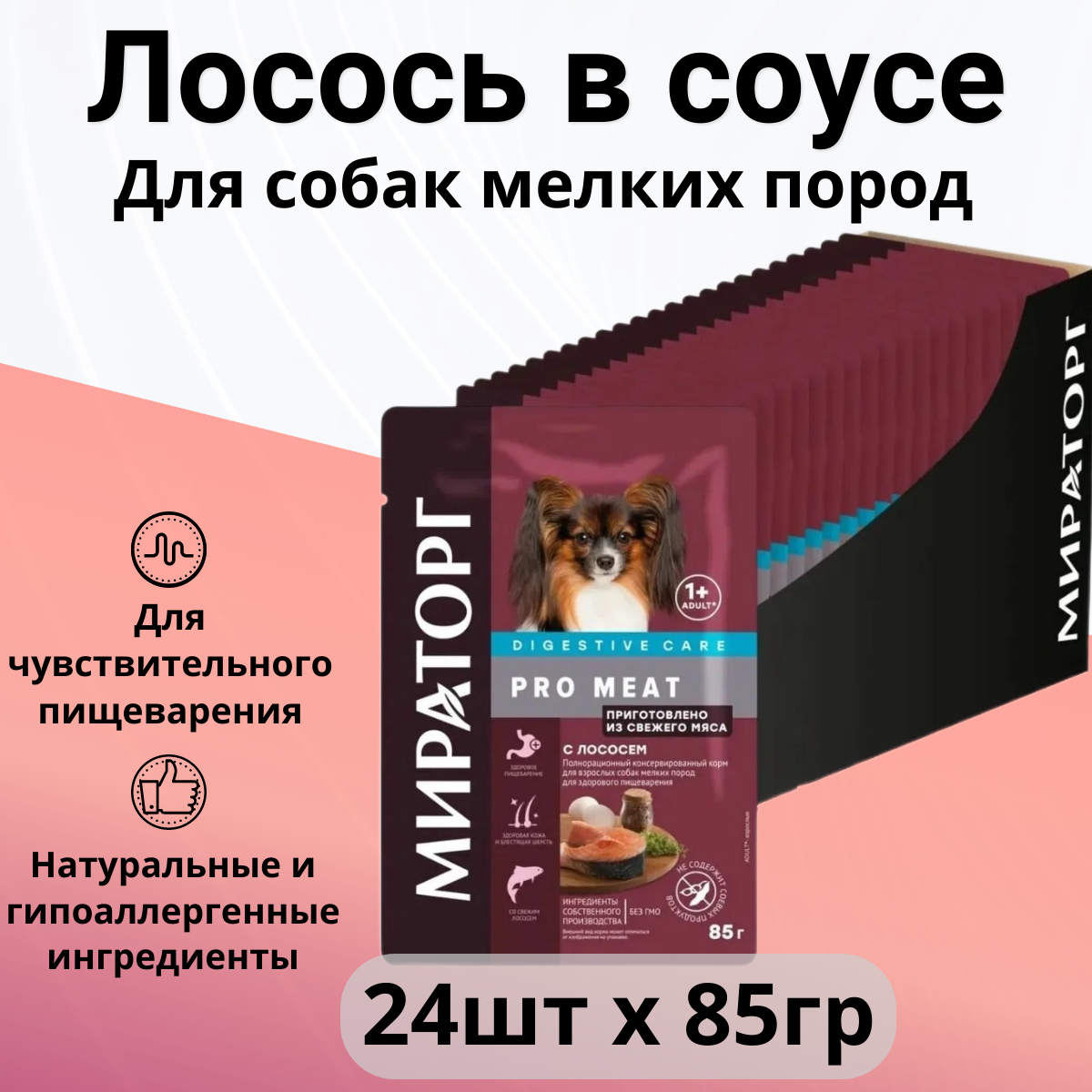 Мираторг PRO MEAT DIGESTIVE CARE для взрослых собак маленьких пород с чувствительным пищеварением с лососем (85 гр х 24 шт)