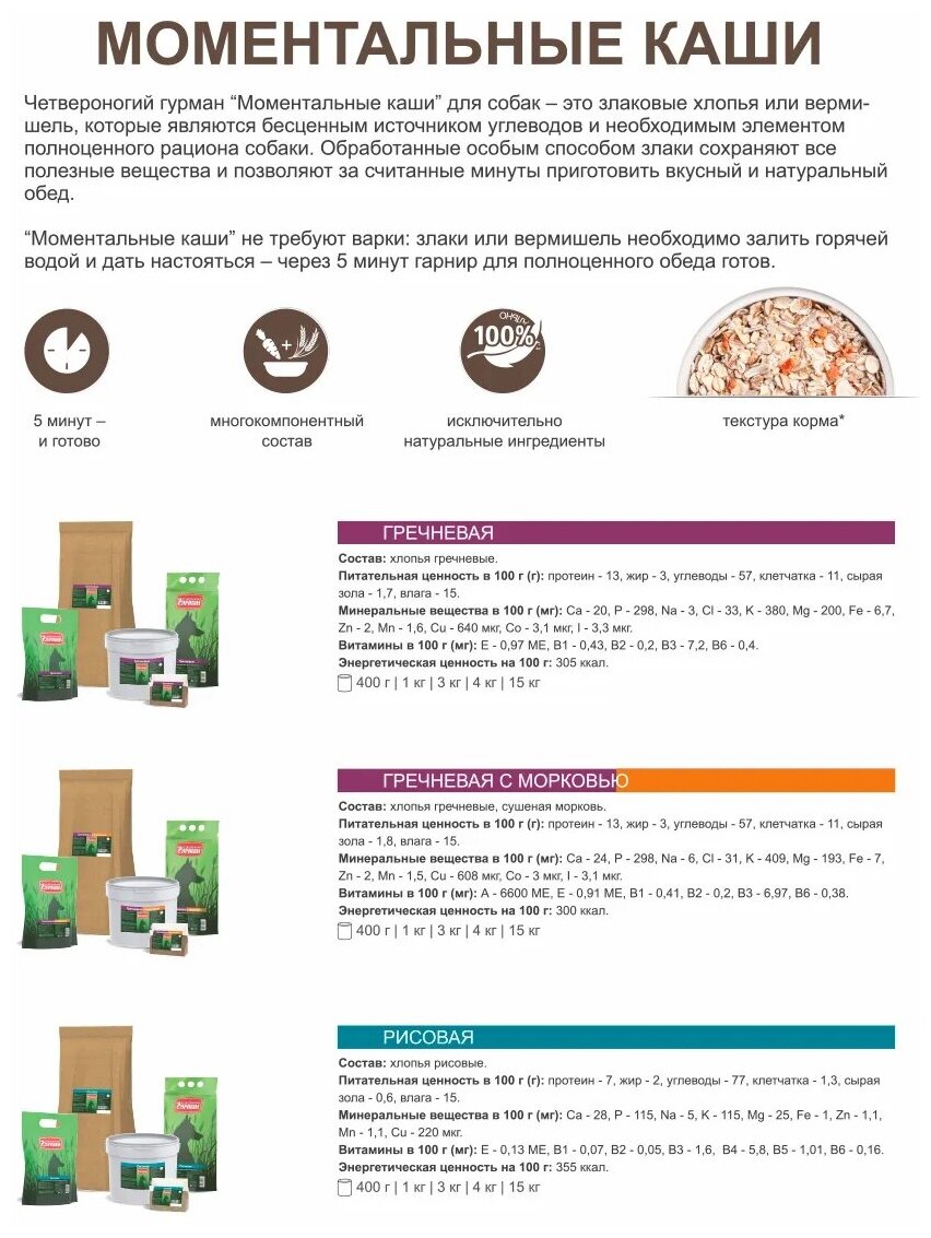 Четвероногий гурман каша для взрослых собак Рисовые хлопья с морковью 0,4 кг