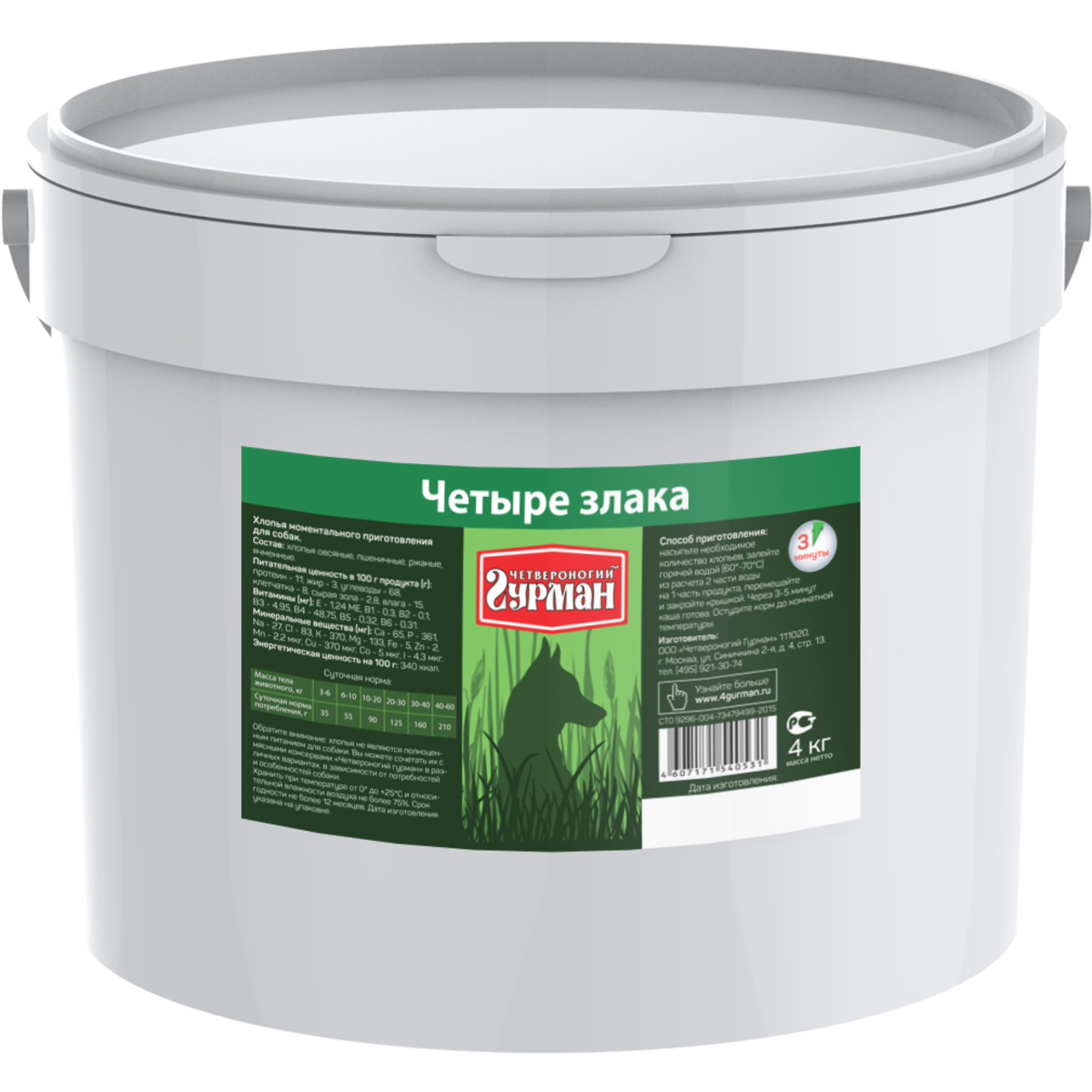 Каша для собак Четвероногий Гурман, злаковые хлопья моментального приготовления "4 злака",4 кг