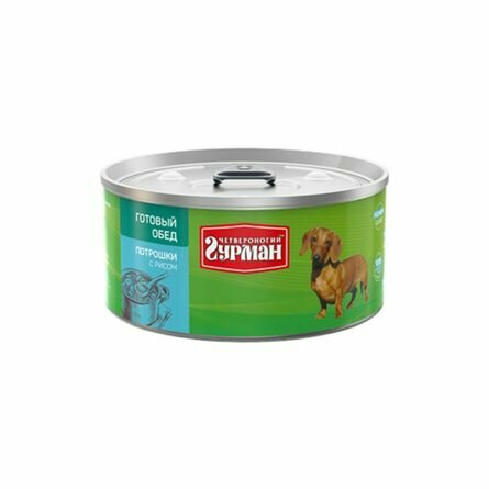 Корм консервированный для собак Четвероногий Гурман "Готовый обед Потрошки с рисом", 325 г х 12 шт.