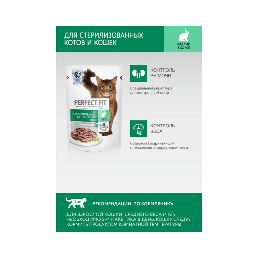 Корм для кошек PERFECT FIT Sterile для стерилизованных, кролик в соусе пауч 75г (упаковка - 28 шт) интересное: