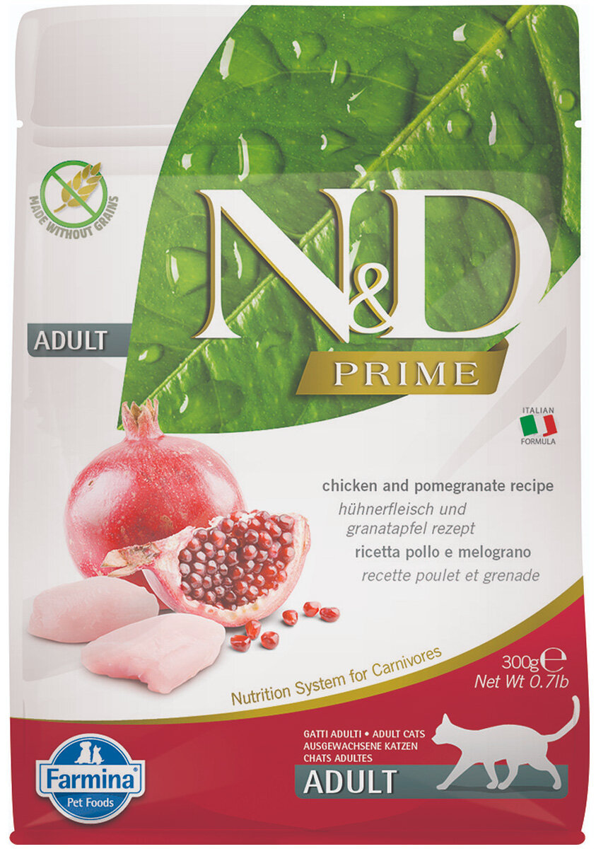 Купить FARMINA CAT N&D PRIME CHICKEN & POMEGRANATE беззерновой для взрослых кошек с курицей и гранатом (0,3 кг)