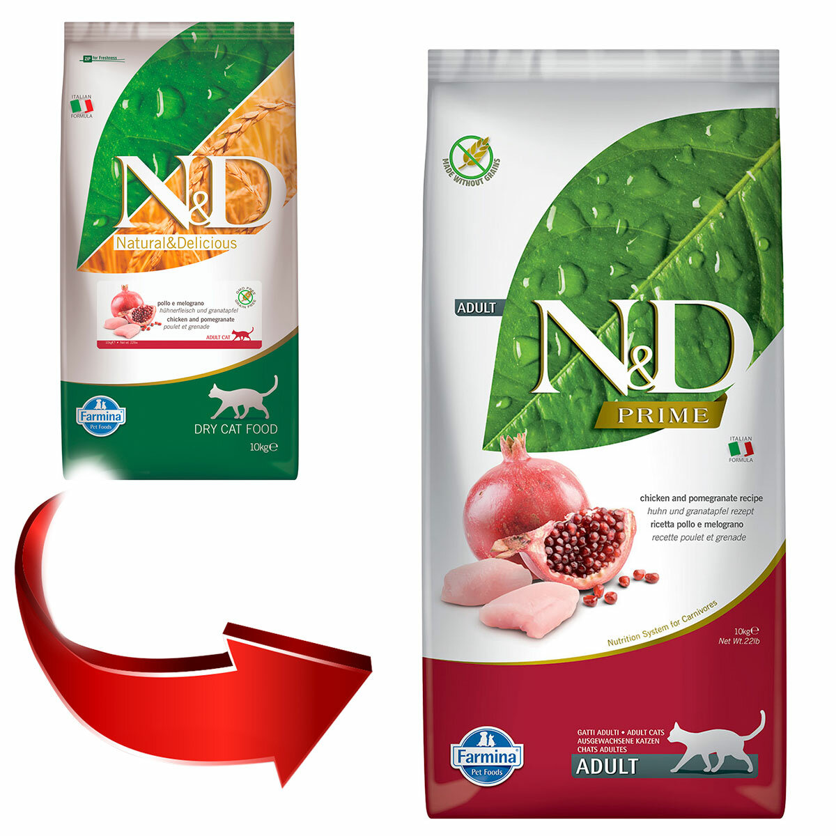 Купить FARMINA CAT N&D PRIME NEUTERED CHICKEN & POMEGRANATE беззерновой для взрослых стерилизованных кошек с курицей и гранатом (10 + 10 кг)