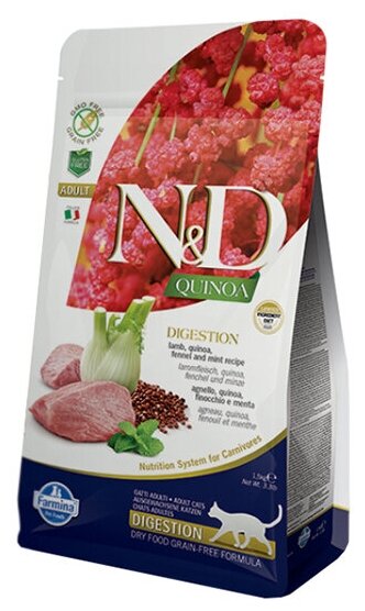 Купить Farmina N&D GF QUINOA DIGESTION LAMB для кошек для поддержки пищеварения, ягненок и киноа, 5 кг