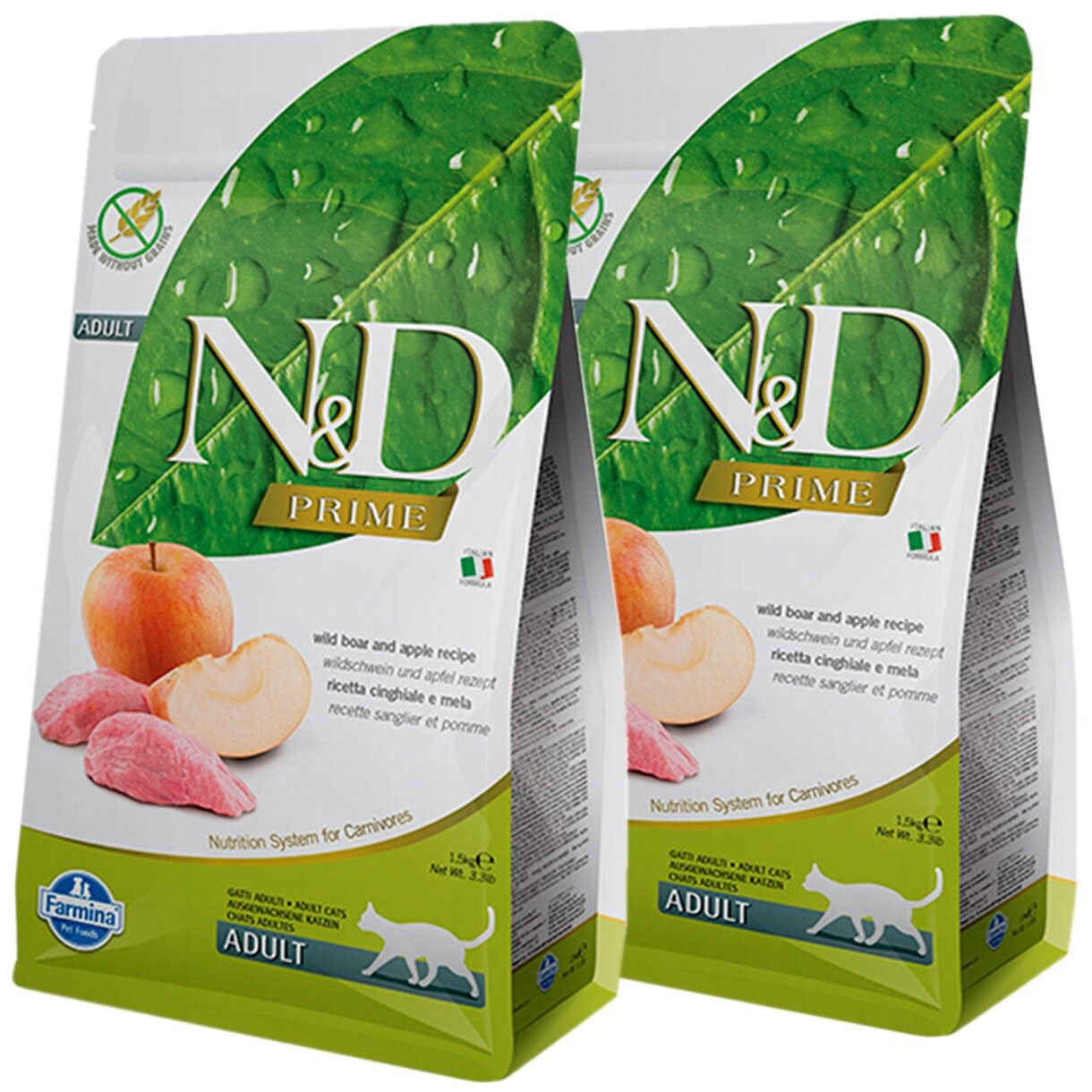 Купить FARMINA CAT N&D PRIME BOAR & APPLE беззерновой для взрослых кошек с кабаном и яблоком (10 + 10 кг)