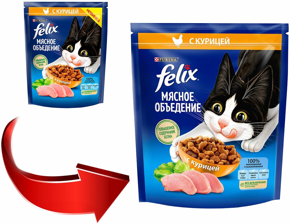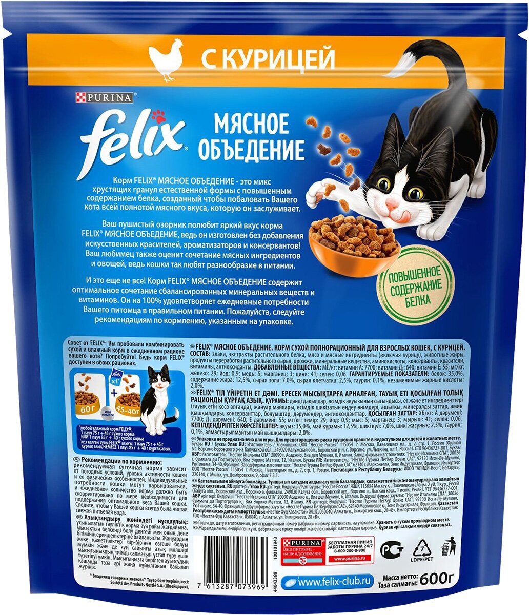 Купить FELIX мясное объедение для взрослых кошек с курицей (0,6 + 0,6 кг)