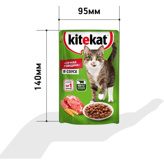 Влажный корм KITEKAT™ для кошек со вкусом говядины в соусе «Сочная говядина», 28 шт по 85г