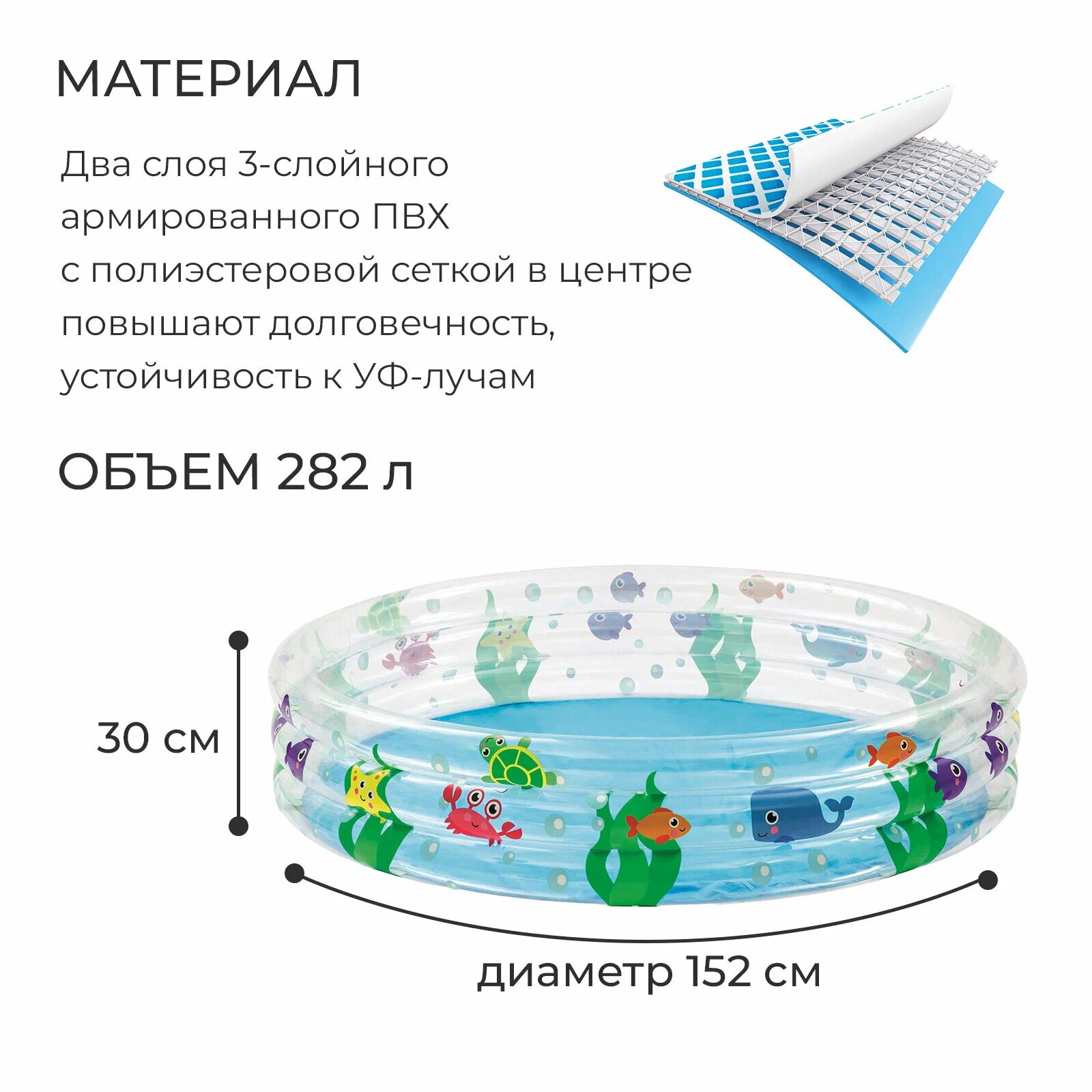 Детский надувной бассейн 152х30см "Подводный мир" 282л, от 2 лет