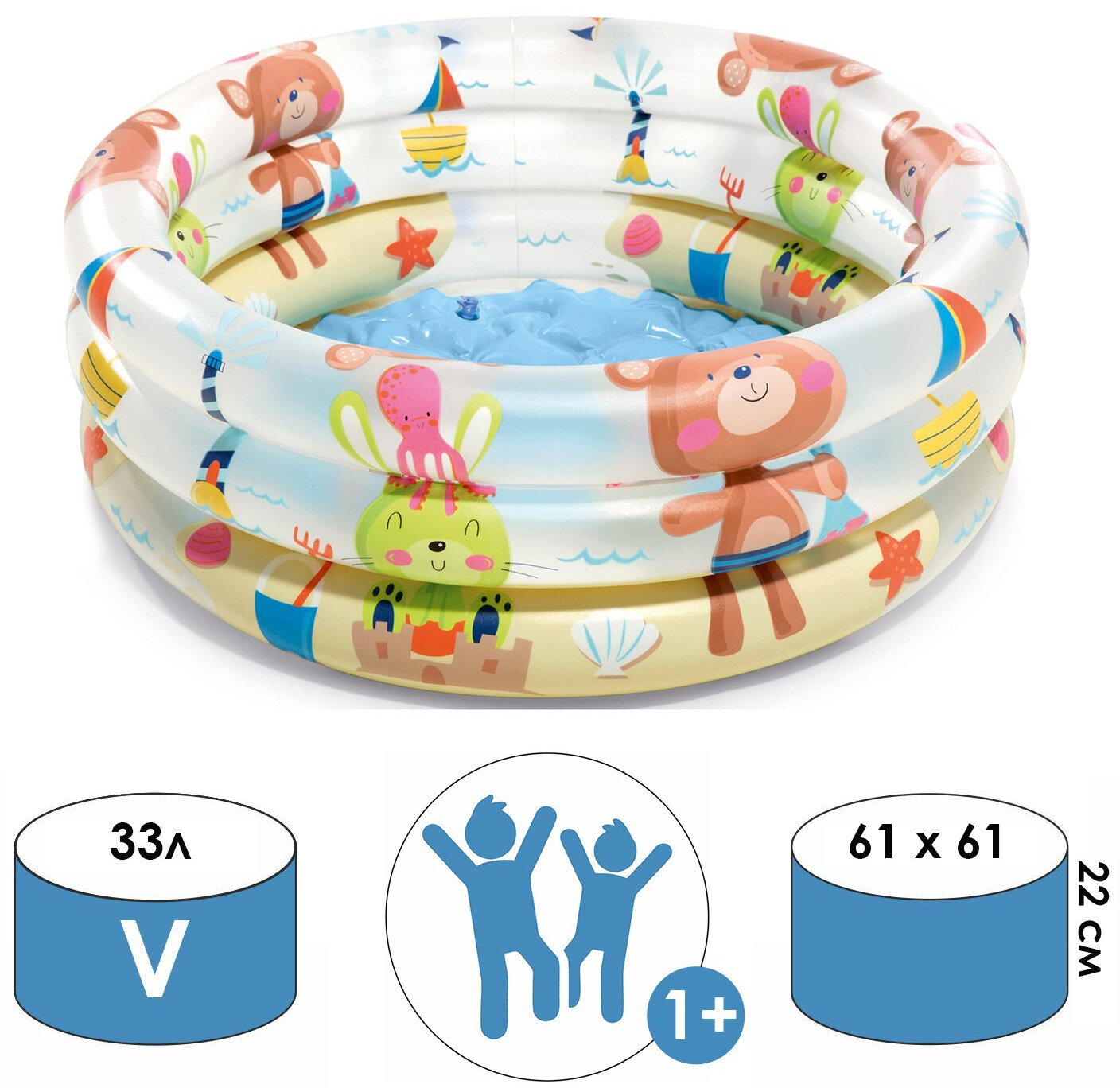 Бассейн надувной детский «Зверюшки», 61 х 22 см, от 1-3 лет