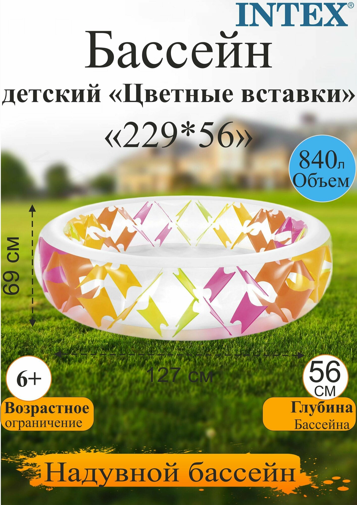 Бассейн надувной Intex, с цветными вставками, 229х56 см, в коробке