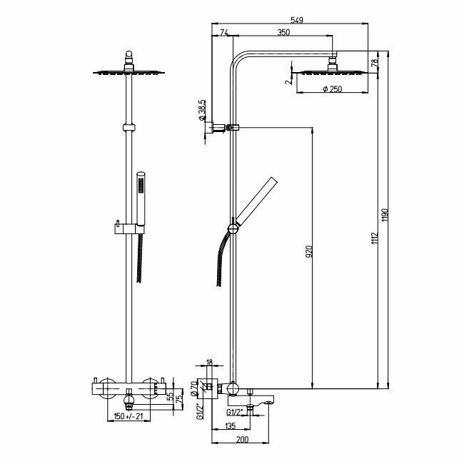 | Дополнительная информация | высота стойки для душа: 1190 мм; диаметр верхнего душа: 250 мм |