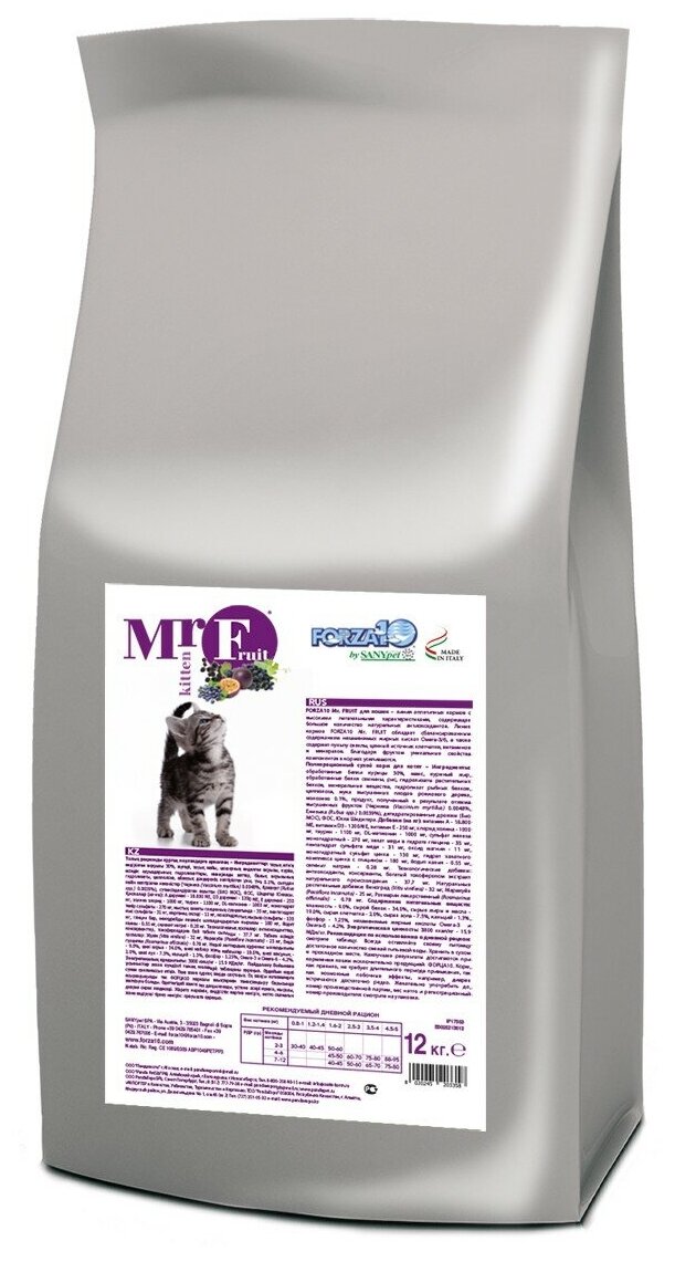 Корм Forza10 Mr.Fruit Kitten для котят, с курицей и фруктами, 12 кг интересное: