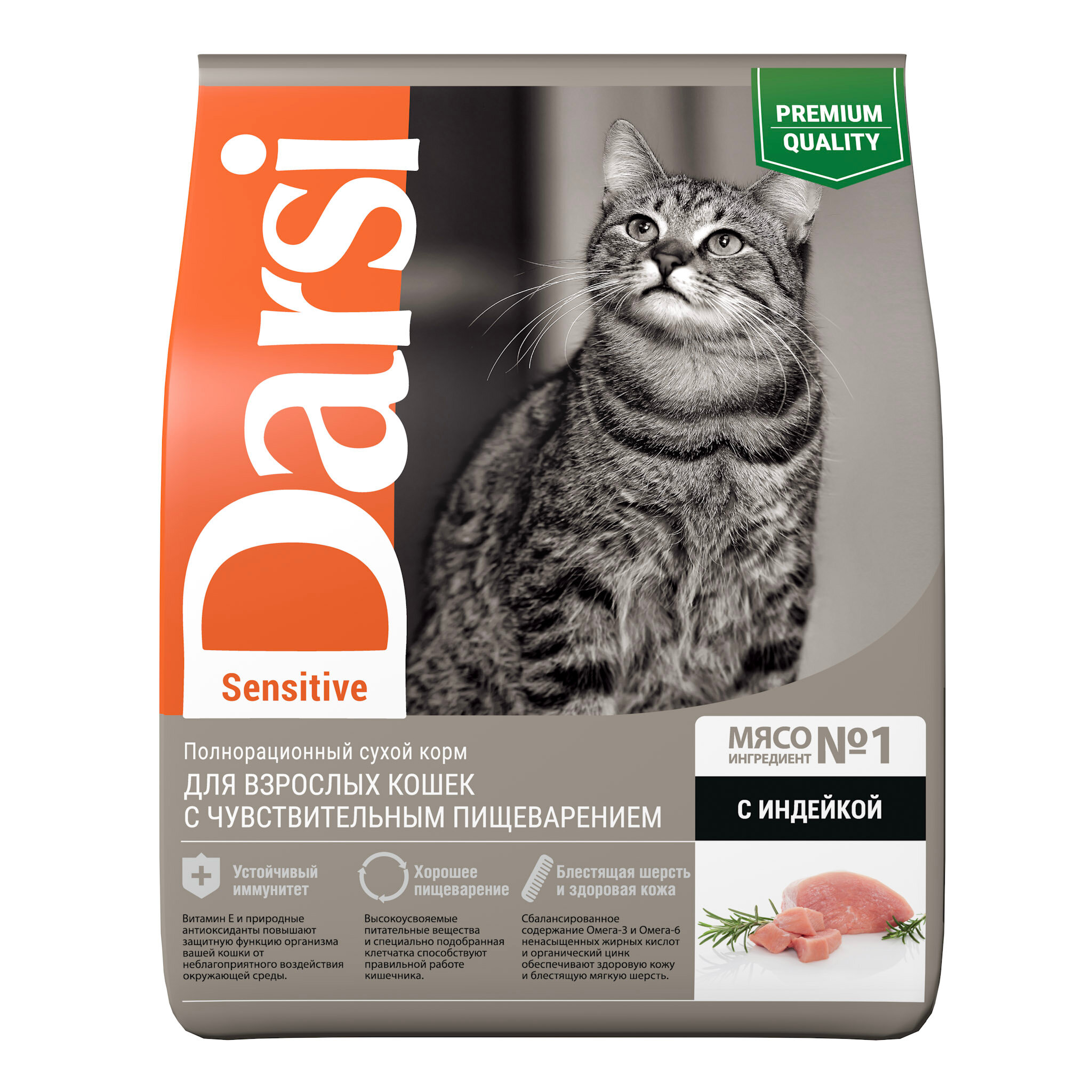 Сухой корм DARSI Sensitive для кошек с чувствительным пищеварением, с индейкой, 1,8кг