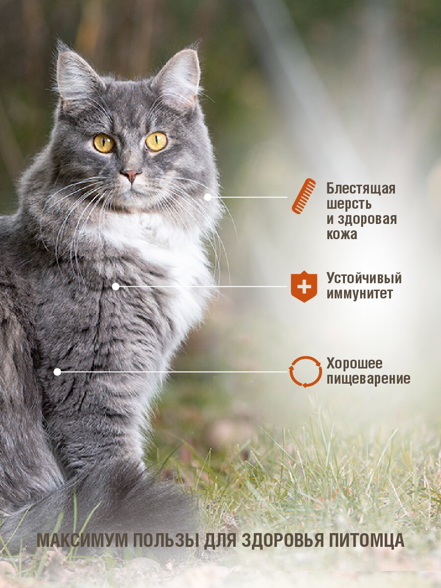 | Плюсы: | Большой объем по очень привлекательной цене. Корм хорошего качества, подходит в том числе и для возрастных кошек. |